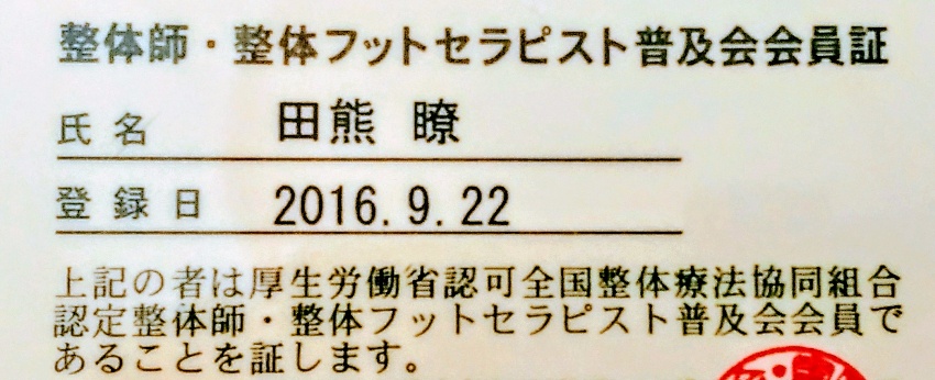 厚生労働省認可全国整体療法協同組合・田園都市整体協会の資格を取得してる方は、気血循環療法が取得しています。